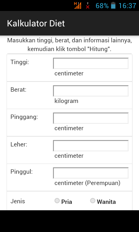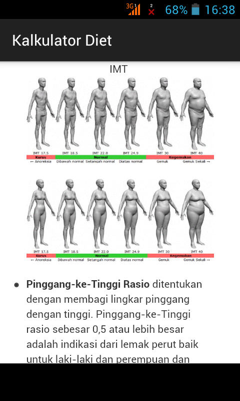 Aplikasi android untuk menghitung kebutuhan protein harian, Indeks Massa Tubuh (IMT), rasio pinggang